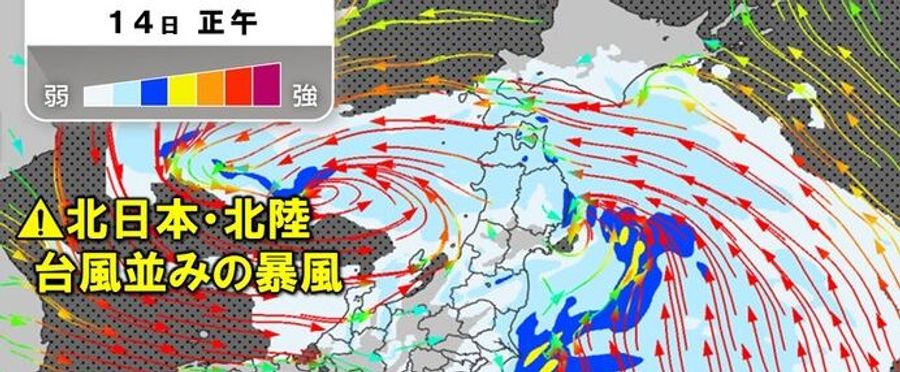 Japan's weather authorities have issued a storm warning for Northern Japan and the Hokuriku region due to take effect on the 15th. Residents in these areas are on high alert with expected violent wind conditions, which could potentially disrupt traffic and damage infrastructure. Local authorities are urging residents to take all necessary safety precautions against the incoming storm.