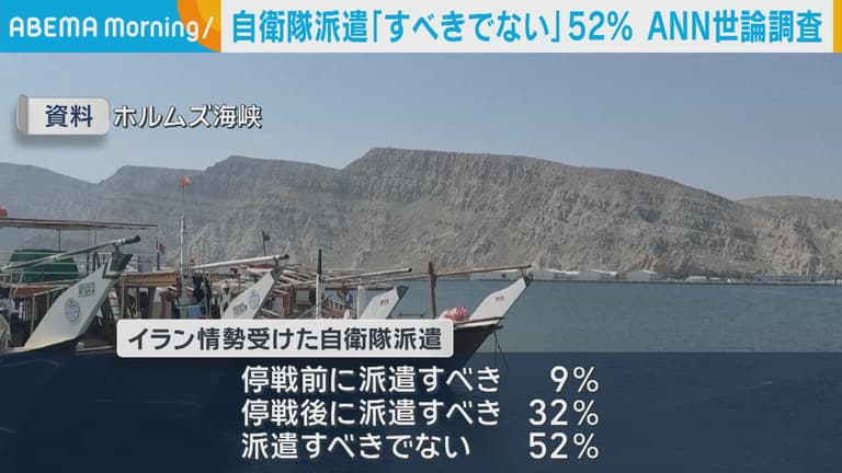 According to a poll conducted by ANN, 52% of Japanese citizens are of the opinion that the Self-Defense Forces (SDF) should not be deployed. The specifics of the deployment in question and the details of the poll have not been disclosed in the headline. The recent poll finding reflects a significant opinion division on Japan's SDF's operations, which has been a recurring topic of national debate.